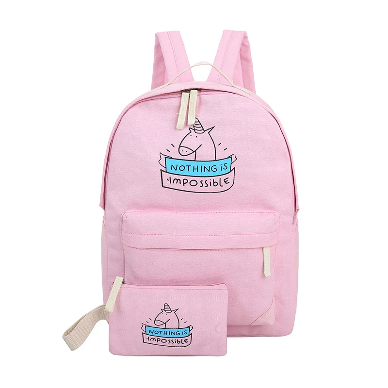2pcs/set women canvas backpack fashion cute travel bags printing backpacks new style laptop backpac