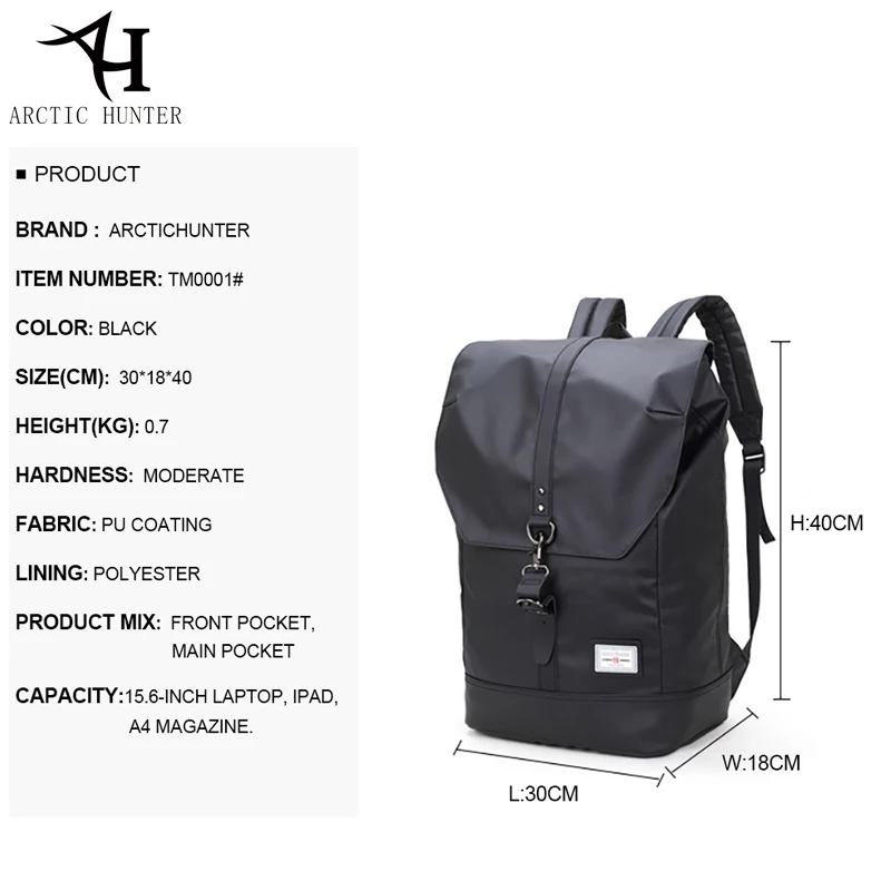 ORIGINAL ARCTIC HUNTER Student school Backpack men 15.6 inches Laptop Backpack Casual travel bag male Waterp